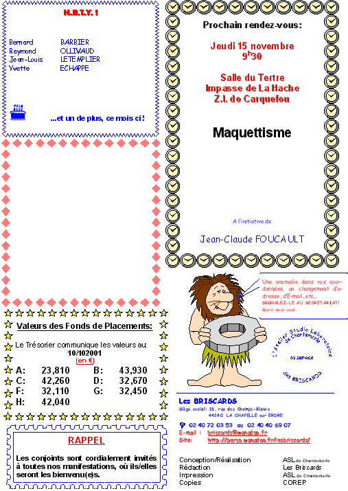 Merci à Alain Lanceau de réserver la salle pour cette réunion et la suivante.